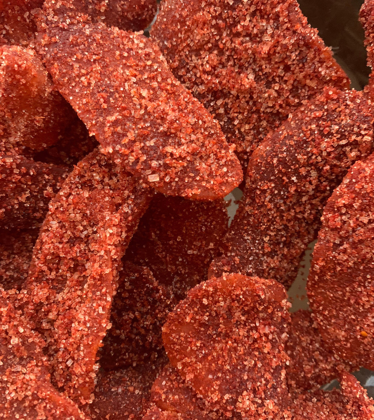 Introducing our irresistible Mango Slices, lightly coated in our signature chamoy then tossed in our chili mix, creating a dry coating. These are the perfect combination of sweet, sour, and spicy, creating a unique taste that will keep you craving more.
