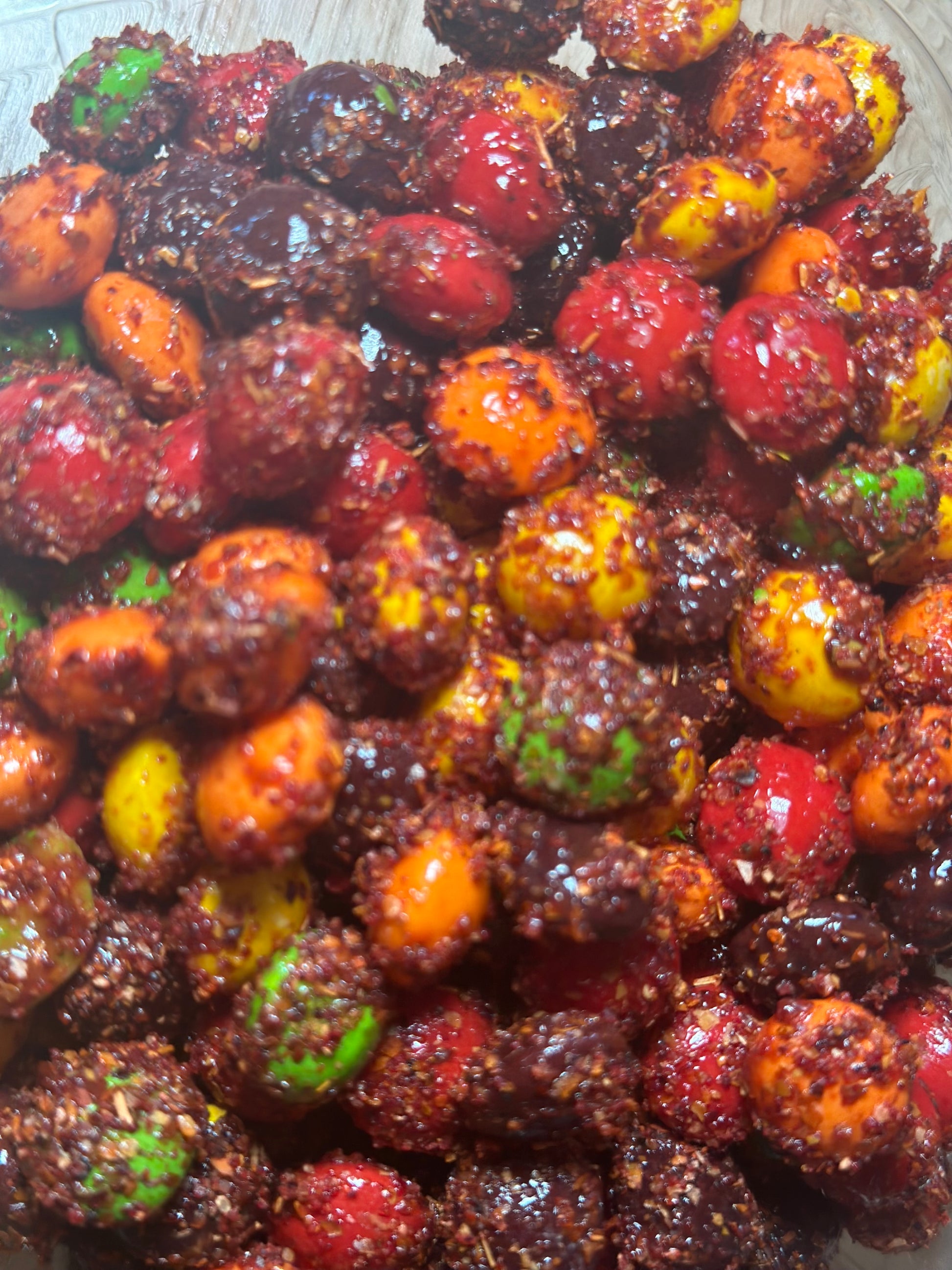 Introducing our irresistible Rainbow Skitts, coated in our signature chamoy and sprinkled with just the right amount of chili mix for an extra kick of flavor. These are the perfect combination of sweet, sour, and spicy, creating a unique taste that will leave your taste buds craving more.
